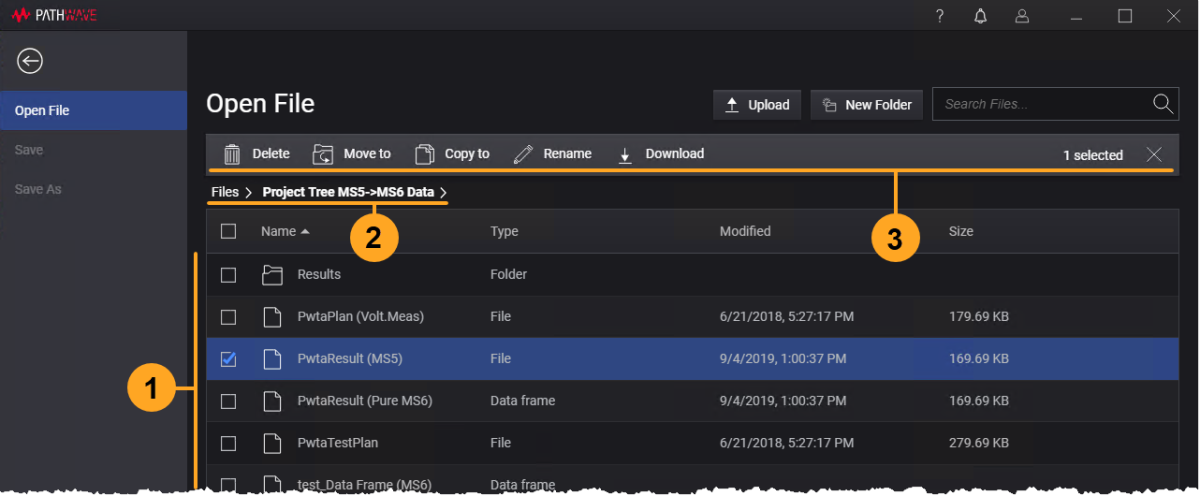 The Open File view allows you to manage the files available in PathWave Desktop Edition.