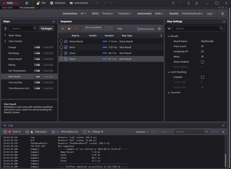 The PathWave Test Automation service provides a powerful, flexible and extensible test sequence and test plan creation with additional capabilities that optimize your test software development and overall performance.