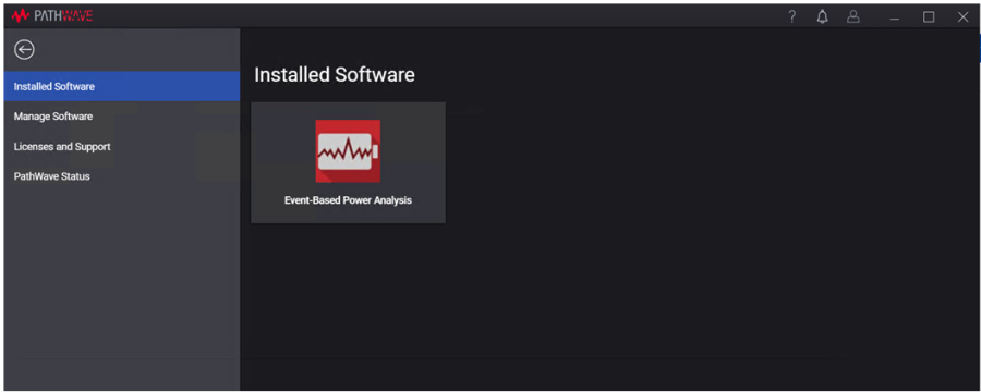 여기에서는 PathWave Desktop Edition에서의 실행 작업, 라이선스, 소프트웨어를 보고 관리할 수 있습니다.